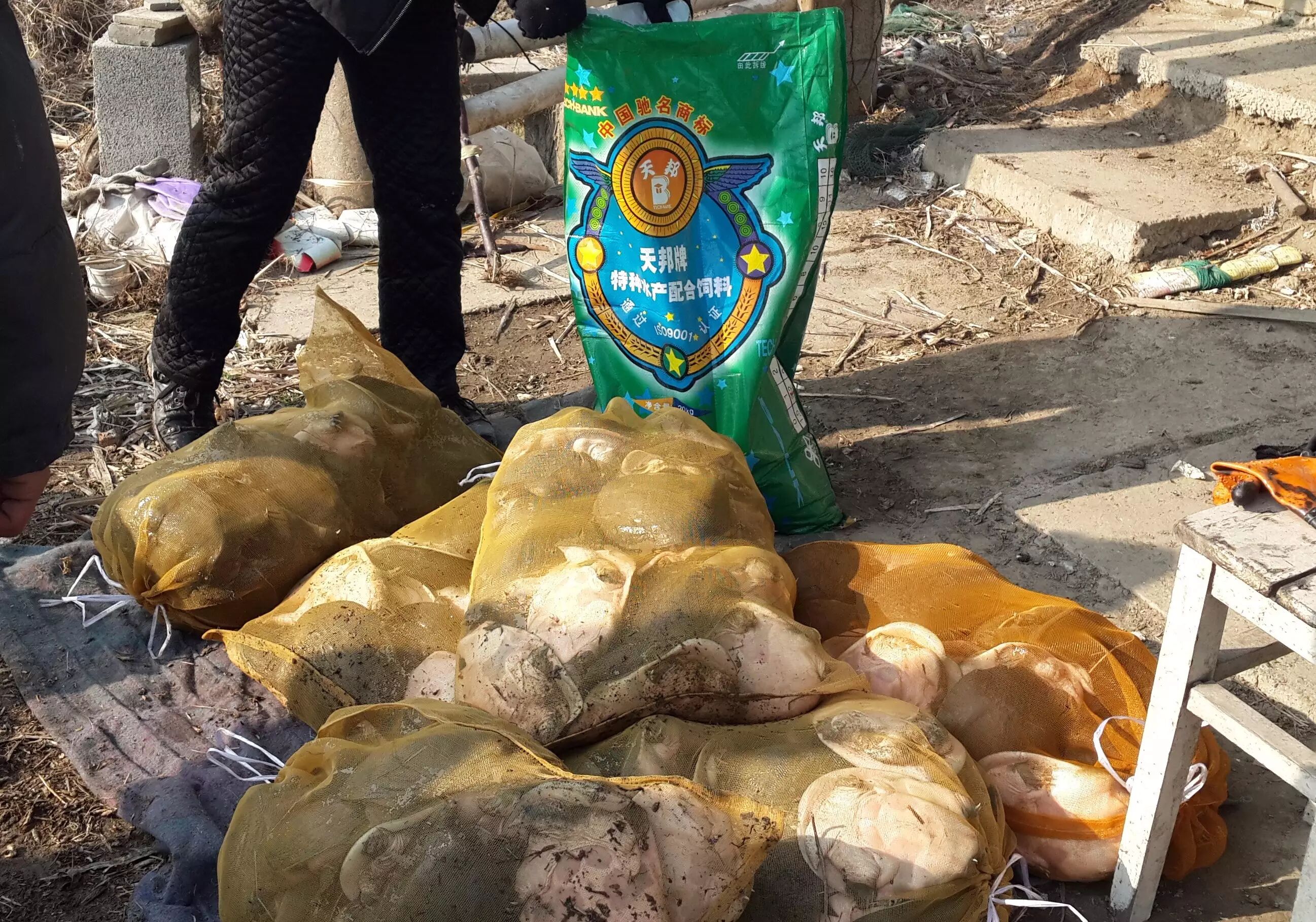 胡中华的甲鱼放入外塘一个星期以后开始投喂饲料。刚开始每天只喂20-30斤/天,随着甲鱼吃食正常,投喂量也逐渐增加。虽然没有什么经验,但是他按照天邦技术员的指导投喂,所以他的甲鱼吃料很好,长速很快——