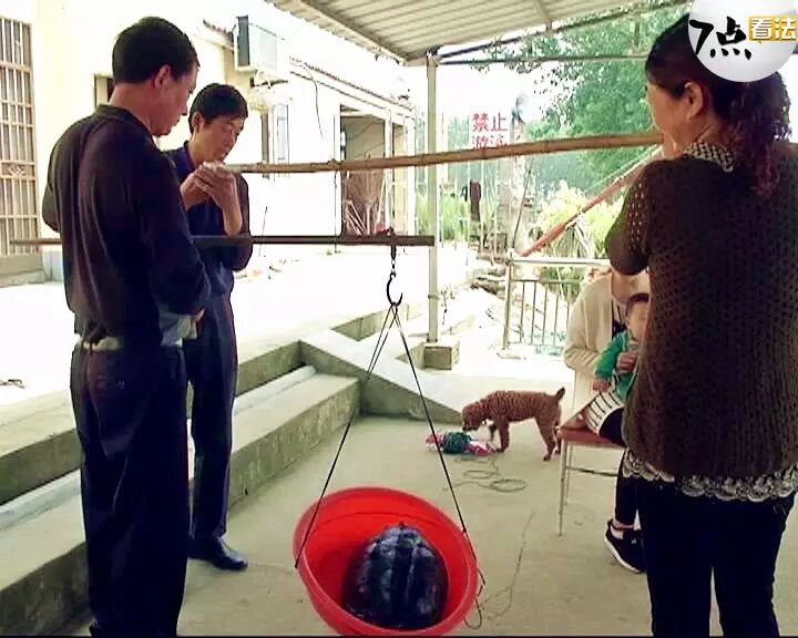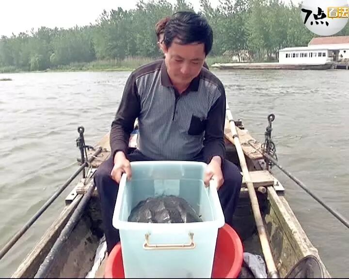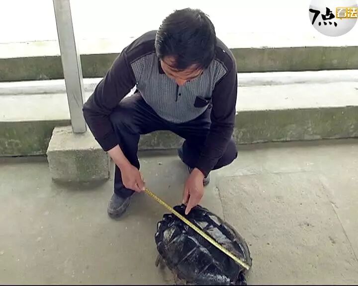 ☎渔民 陈力强:在无意之中看到,网起来以后,一看,是只大乌龟,在里面慢慢的爬动,当时以为是甲鱼的呢,后面我们把网慢慢的又起起来,小心翼翼的把它抱住,而且这个龟很大。