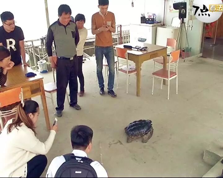 ☎村民:张玉华:从来没有看过这么大的大乌龟,很稀奇啊。