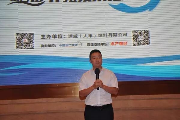 大丰通威饲料有限公司总经理张加林在开场致辞中表示了对广大通威饲料用户的感谢,并表示2016年大丰通威将会展示出全新的面貌,打造海边专业的养殖技术平台、创新新的商业模式、发展渔光一体,实现太阳能新能源跟养殖的最优结合。