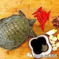 材料:甲鱼一只、葱一段、姜一块、蒜一头、八角五个、老抽三勺、生抽十勺、辣椒几个。