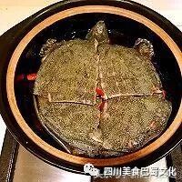 8. 盖上甲鱼壳,加水三杯,大火烧开后改小火炖一个小时,最后转大火收汤。
