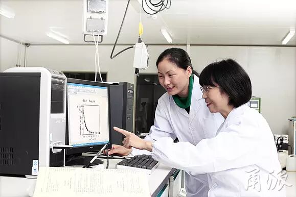 (钱国英(右)和小伙伴对切片进行数据分析。通讯员供图)