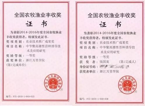 这项科研叫《中华鳖高雄性苗种诱导技术及应用研究》,最近还获得三年一次的全国农牧渔业丰收奖一等奖,钱教授就是第一完成人。