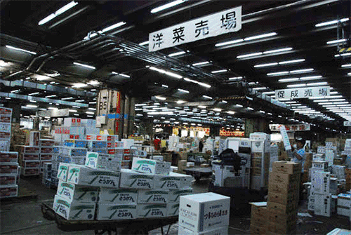 筑地市场不是独沽一味渔市场,还有其他菜蔬干货等在周边,是东京厨师们的大雪柜。