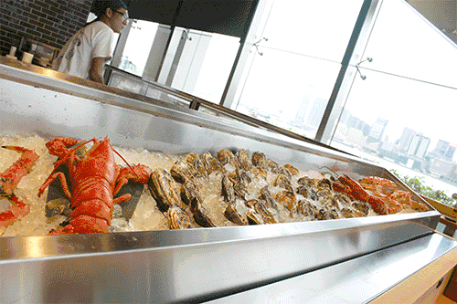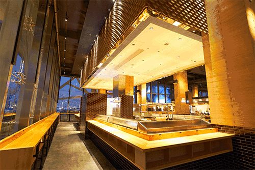 香港人喜爱吃刺身寿司,立吞寿司区(顾名思义是站立着吃的)和海鲜生蚝吧区都拥有维港美景,在这里对着海景用餐真是大饱眼福。
