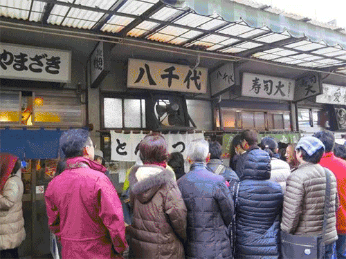 筑地市场的日本海鲜料理包含不同风格的日本料理,以寿司、刺身居多,即使人龙再长,大家还是耐心等候。