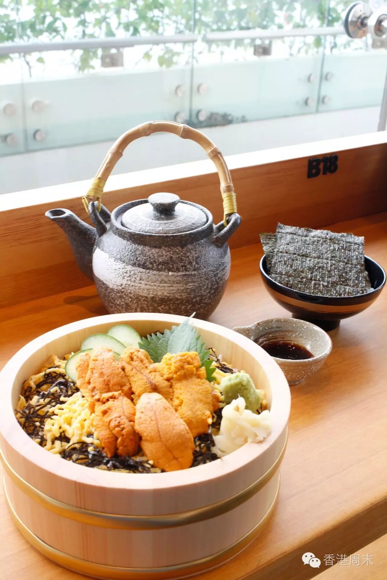 海鲜丼部份,他们建议3种不同吃法,除了只加酱油及青芥末吃,还提供紫菜给人客自制手卷;第3个吃法则是以一壶高汤倒下去,变成茶渍饭。