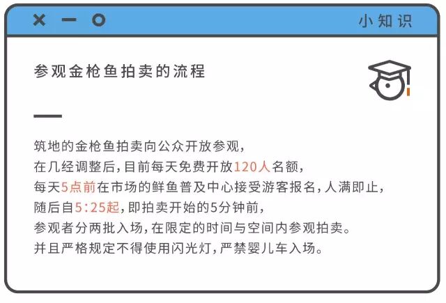 近年来,随着日本旅行的火热,筑地的金枪鱼拍卖越发受游客欢迎。根据现在的经验,在大多数情况下,如果要参观拍卖,需要凌晨三、四点,甚至更早前赶到市场报名点排队。由于此时东京的电车网已经停运,出租车又要加收夜间费,对游客来说需要付出很大的交通成本,是否值得熬夜去看,还是要结合自己的经济、精力和爱好来决定。