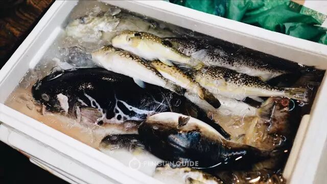 ▌河豚:与鳕鱼一样是冬季最佳时令的食材,在日本处理贩卖河豚需要特别许可,筑地市场里专司河豚处理的中盘商不少,也多见活鱼。在冬季的市场里见到河豚后,别忘了走出市场后找家料理店,好好品尝一顿冬季限定的河豚料理吧。