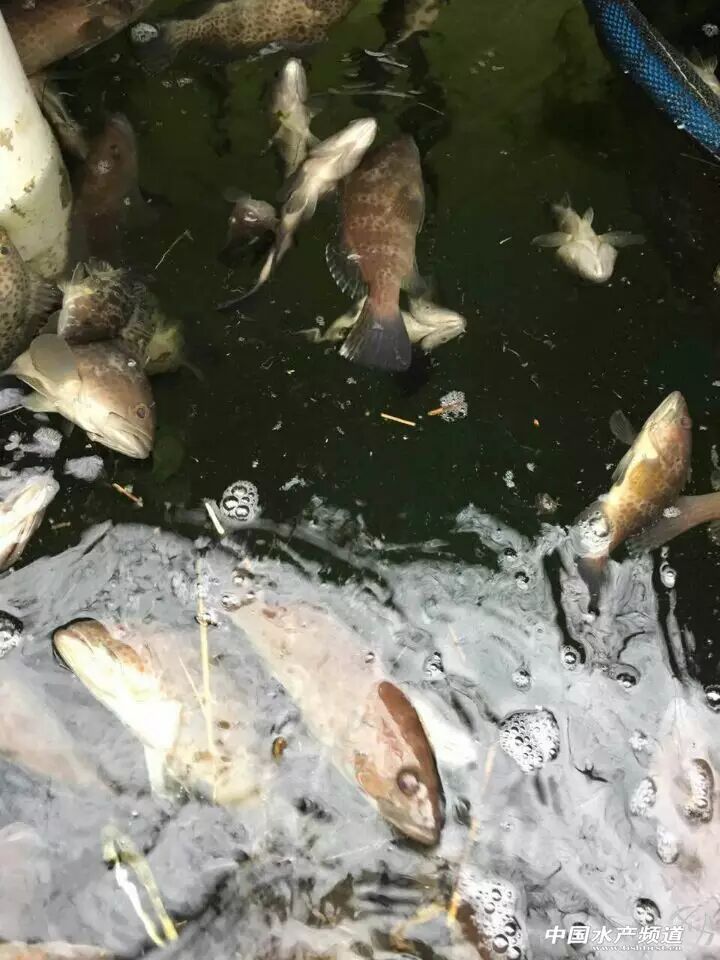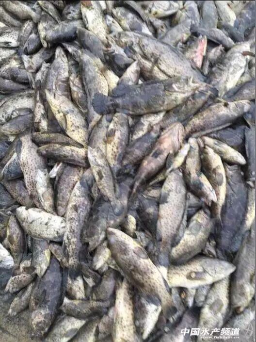 2月1日,笔者又再次接到阳江市阳西县儒洞镇坡尾养殖户廖聪报料,今天他去养殖塘巡塘时,发现有几十条青斑(石斑鱼)已浮在水面上,感觉大事不好,马上叫工人排水,最后发现全塘的青石斑已不知何时全部死在了塘底,大约6000斤,由于死亡时间过长,很多石斑鱼的身体已腐烂变质并发臭,毫无食用及利用价值。最后,廖聪只得挖一个深坑把这些海产珍馐进行消毒和填埋处理。据廖聪表示,这些石斑鱼规格都在1-2斤,正是上市最好时机,寒潮前市场收购价是25元/斤,如果供应春节市场,价格将更进一步。至少,廖聪又损失了15万元。