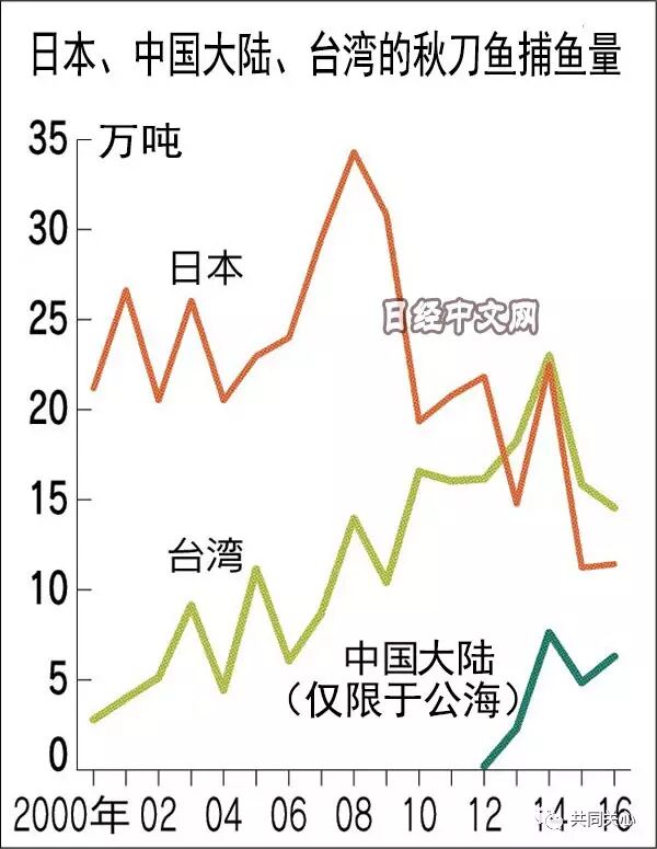秋季的美味食材秋刀鱼的争夺战日趋激烈。截至7月15日,日本等8个国家和地区参加的北太平洋渔业委员会(NPFC)召开会议,针对制定防止滥捕的国际框架进行了磋商,但由于中国大陆等的强烈反对,谈判以决裂而告终。中国大陆和台湾的媒体也迅速报道了谈判结果,并称日本提出的捕捞量配额方案“不合理”,各个国家和地区间的巨大分歧浮出水面。从秋刀鱼的渔场来看,日本近海日渐式微,日方把秋刀鱼减产的原因归咎于中国,方案对日本比较宽松,而对中国的限制比较大,不合理。日本政府在会议上提出设置按国家和地区设定上限的“捕捞量配额”,具体来看,日本为24.2万吨,台湾为19.1万吨,而中国大陆为4.7万吨。在微博上,中国大陆网民也纷纷对此表示不满:“日本人口只有中国的13分之1,为何秋刀鱼捕捞量是中国的5倍?”“日本正在滥捕金枪鱼,凭什么指责别的国家?”北太平洋的秋刀鱼捕捞量2011年~2015年平均每年为46.1万吨。此前日本和俄罗斯的捕捞量占大部分,但随着亚洲企业的参与,竞争日趋激烈。2013年台湾的捕捞量超过日本,跃居世界第一,排在第3位的中国大陆的捕捞量则在最近4年里增加至30倍。日本的秋刀鱼捕捞量仍排在第2位,但2016年仅为约10万吨,比2年前减少了一半,创出40年来的最低水平。这是因为在公海上,中国大陆和台湾的大型船只正在“大肆捕捞”,同时“由于海水温度变化,秋刀鱼不再靠近日本近海”(东京财团首席研究员小松正之)。受最近日本秋刀鱼减产的影响,东京筑地市场2016年平均批发价达到每公斤562日元(约合人民币34元),比2014年上涨3成。由于日本国产秋刀鱼价格昂贵,罐头等日本加工企业大多从韩国和台湾采购。原本中国大陆很少有吃秋刀鱼的习惯,但福建省的水产业相关人士表示,如今“秋刀鱼将带来财富”。他还表示,日本秋刀鱼越是减产,“由于高价采购,我们的捕捞热情越会加强”,形成十分讽刺的局面。鲭鱼、鲣鱼加上枪乌贼,外国渔船靠近日本的专属经济区(EEZ)、扩大捕捞的情况如出一辙。东京财团首席研究员小松正之表示,为了在公海维持可持续的渔业,“各国应当分享科学的数据,制定客观规则。这可能需要3年以上时间”。筑地市场的专业人士中有声音表示,。永旺零售的水产商品部长松本金藏表示:正是因为国家有别,积极展开对话的日子已经到来……