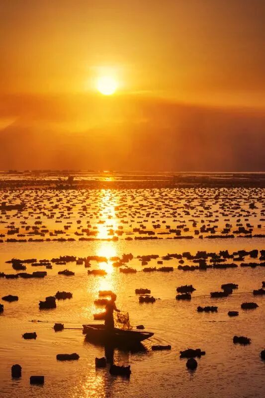 在福州的海边,当渔舟唱晚的时候,劳动者的智慧便显露无穷,他们或是弯下身子,或是扬起船帆,夕阳的光洒在他们的举手投足间,一切都显得温馨又自然,这样的场景就是生活间的美,而这种美只有阳光才能创造。