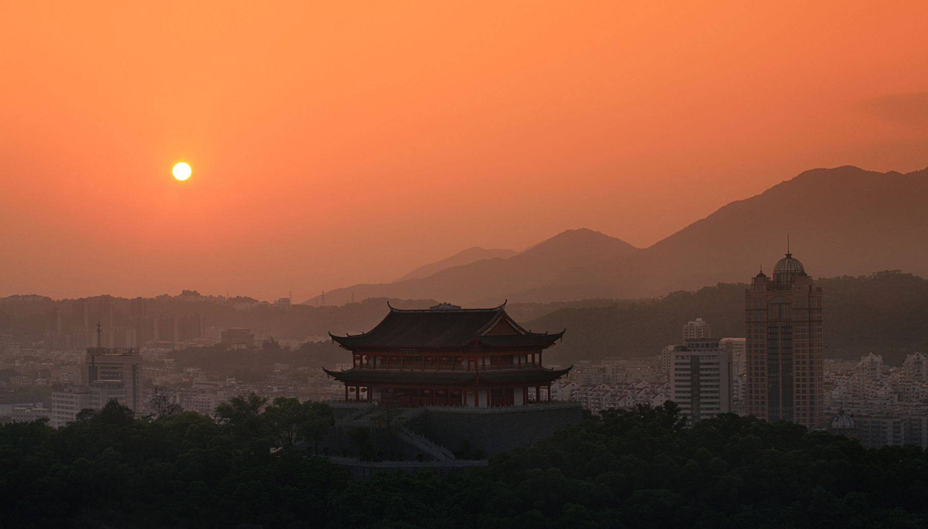 如果想在福州看一场夕阳,镇海楼绝对会带给你震撼的视觉体验!登上高高的楼阁,遥遥望去,此时的太阳光线变得异常柔和,从一个圆蛋黄慢慢变成半个蛋黄,不断沉没在地平线下,如果你抓好这束光,相信一定可以出大片!