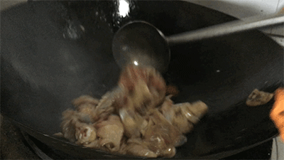 在完成对甲鱼的处理后,吃喝玩乐君进入后厨,小哥在烹制老母鸡,娴熟的手法令只会吃不会做的我羡慕不已,大铁锅估计掂几下就没力了。